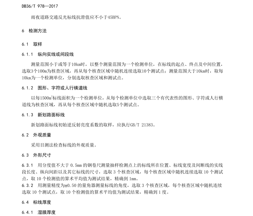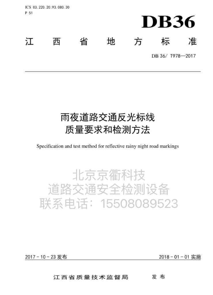 DB36T 978-2017 雨夜道路交通反光標線質量要求和檢測方法